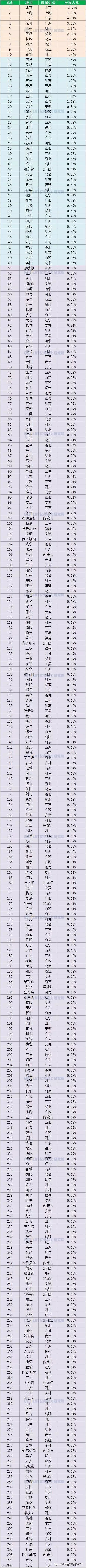 导读:最新!中国实物网上零售交易额全国城市排名top300根据亿邦动力研究院物流测算法数据模型,得知2017年2月