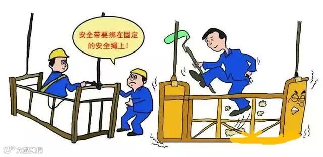 2、作业人员系好安全带,安全带不能固定在吊篮上,必须挂在单独设置的安全绳上;