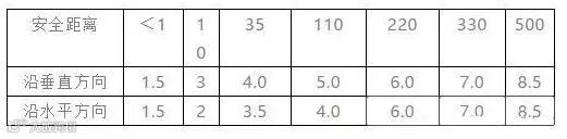 5、吊车距离高压线,线路电压小于1KV时,垂直方向和水平方向的距离至少在1.5米以上。
