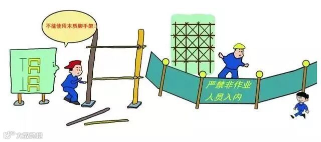 2、严禁使用木、竹手架与铁质脚手架混搭,整体高度超过3米时,禁止使用单排脚手架;