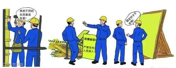 安装与拆除模板时不能采用猛翘、硬拉,大面积撬落和拉到的方法,防止伤人和损坏物料。