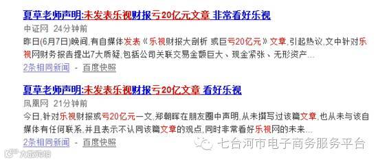 周二晚间某微信公众号发布文章《乐视财报大剖析,或巨亏20亿》,署名夏草。文章获得新浪财经转载之后瞬间引爆话题。