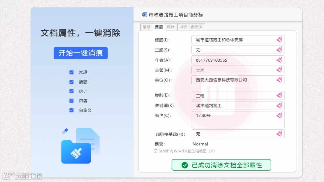 一键清除文件的原始属性和修改痕迹,不留痕迹,文档更安全