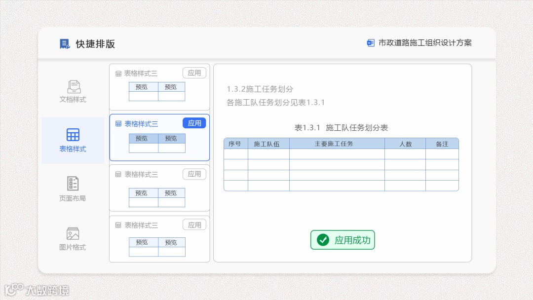 支持对文档排版样式、页面格式、表格样式的提取和编辑,全文图片格式可一键调整,灵活应用各种文档排版样式,制作统一、规范、美观的标书