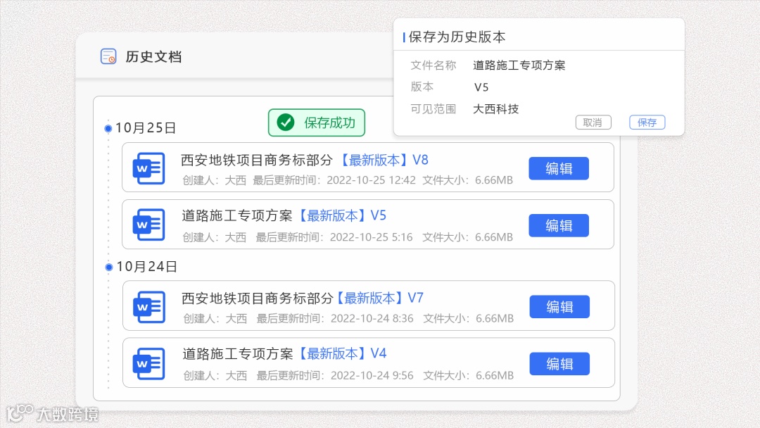 系统保留历史文档版本,方便标书修改编辑,让协作编标有迹可循
