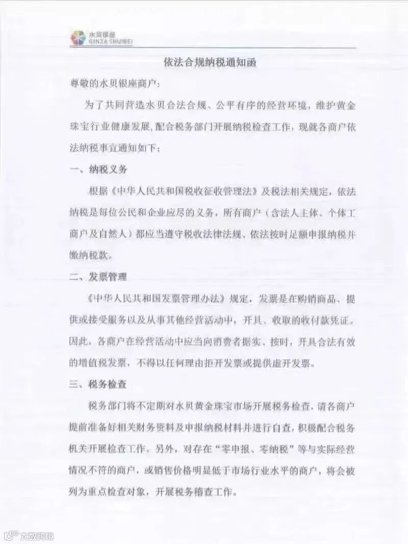 如今深圳水贝黄金市场明确规定,所有黄金交易必须开具发票。