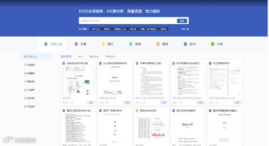 2. 提供基本素材模板,以及丰富素材供免费下载,并持续更新,其中包含各行业标书模板、大纲模板、方案案例、优质图片、图表图例、表格模板等。