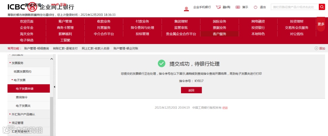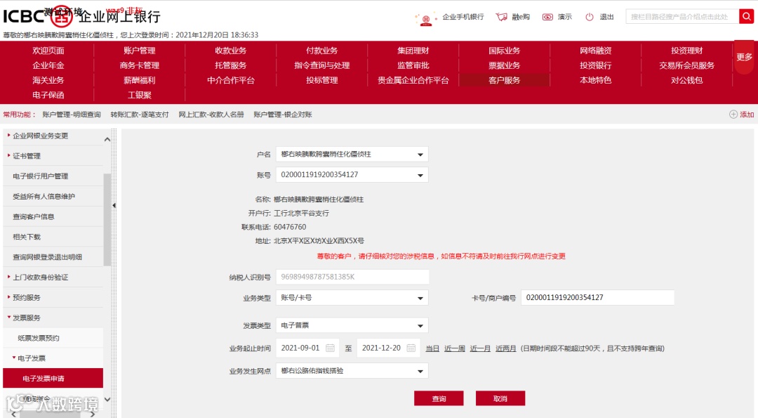 银行手续费发票可自行网上申请
