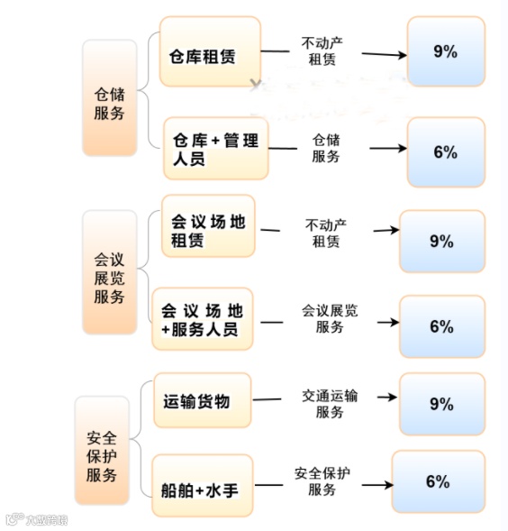 (1)根据财税[2016]36号文附件一《销售服务、无形资产、不动产注释》的规定,水路运输的光租业务、航空运输的干租业务,属于经营租赁。水路运输的程租、期租业务,属于水路运输服务。航空运输的湿租业务,属于航空运输服务。经营租赁业务,按照有形动产租赁税目征税,税率为13%;运输服务,按照交通运输服务征税,税率为9%。