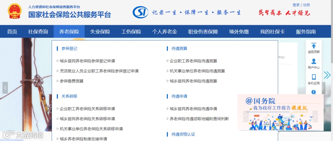 第一步:登录“国家社会保险公共服务平台”,找到“养老保险-企业职工养老保险待遇测算”。