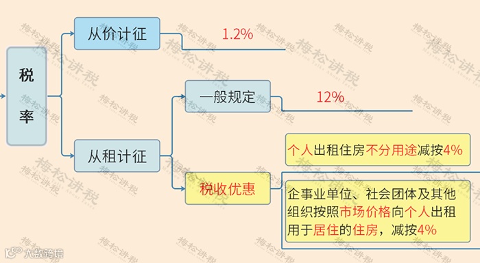 房产税是对房屋产权所有人征收的税种,分为从价计征和从租计征两种。适用的税率如下: