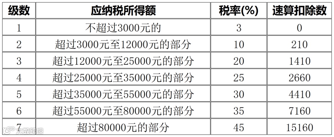 (注:适用税率,以全年一次性奖金收入除以12个月得到的数额对照月度税率表确定)