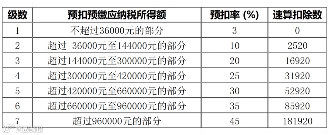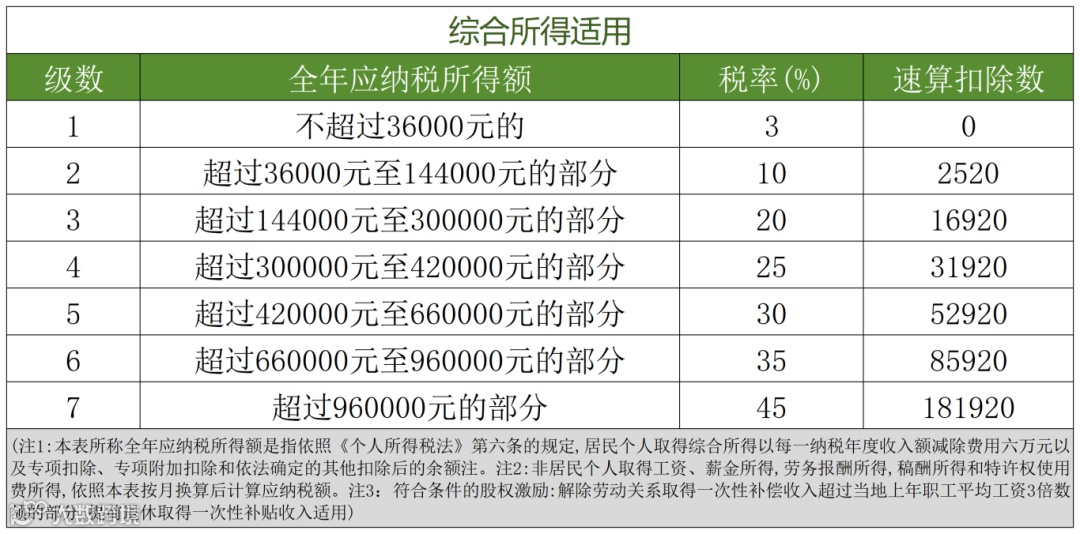 3、综合所得税率表(个税汇算清缴时适用)