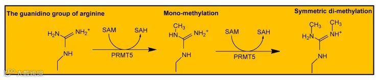 图1 PRMT5蛋白合成二甲基精氨酸过程示意图[2]