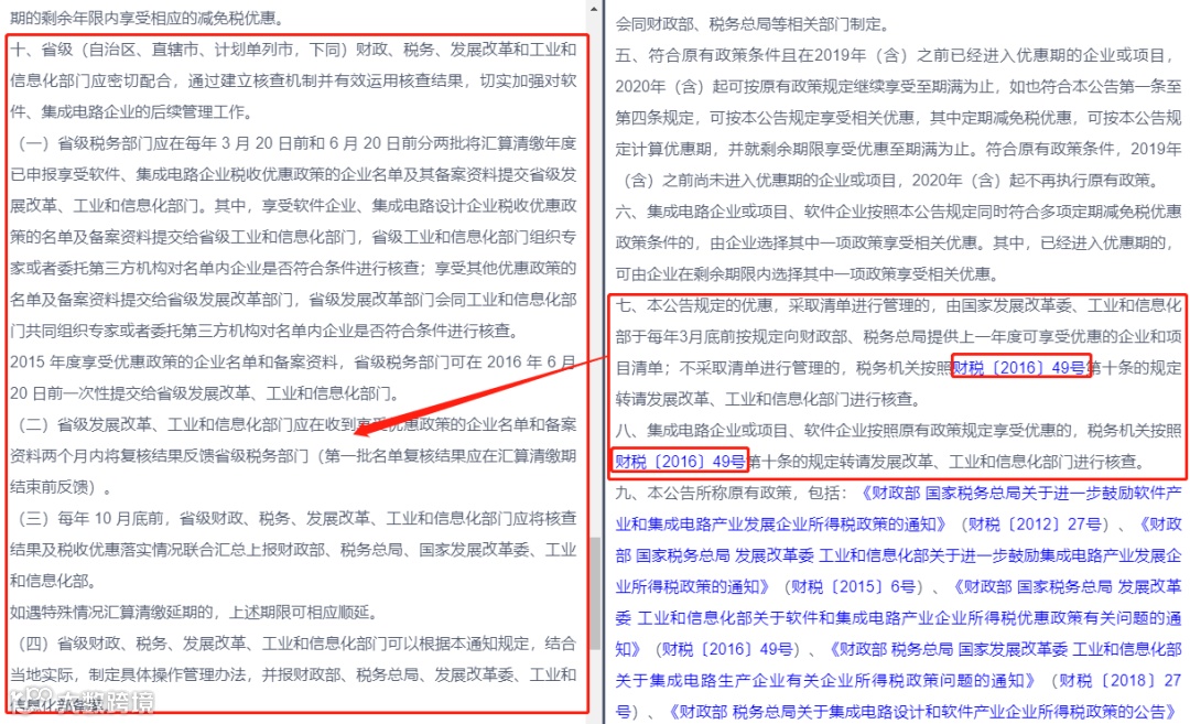 一个屏幕分屏查看三个关联文件,逐条查看、比对,更够快速了解,《关于促进集成电路产业和软件产业高质量发展企业所得税政策的公告》出台的背景及依据。