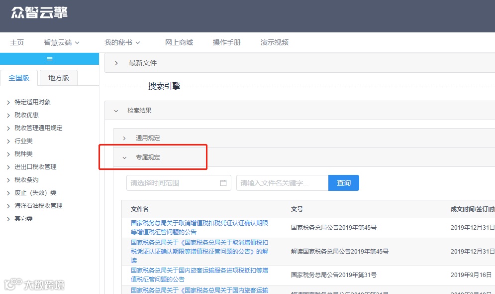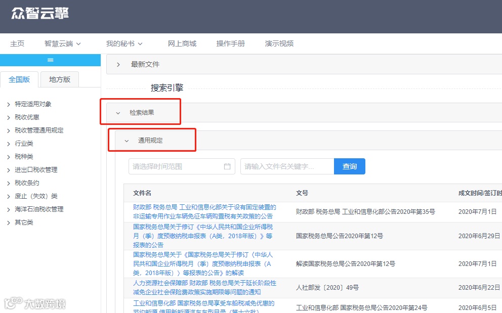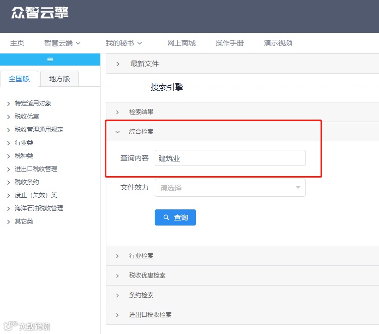 众智云擎税法检索