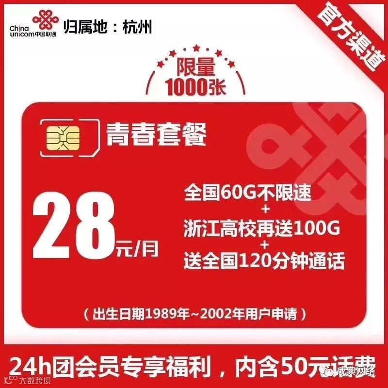 2019年4月10日,中国联通杭州分公司与24h团正式达成深度合作,在整个杭州城联合推出了0.01元购24h团青春套餐电话卡活动,诚意十足、优惠满满。