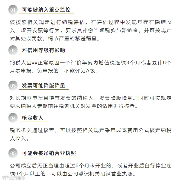 如果公司不做税务申报或长期零申报(超过6个月)会有什么影响吗?