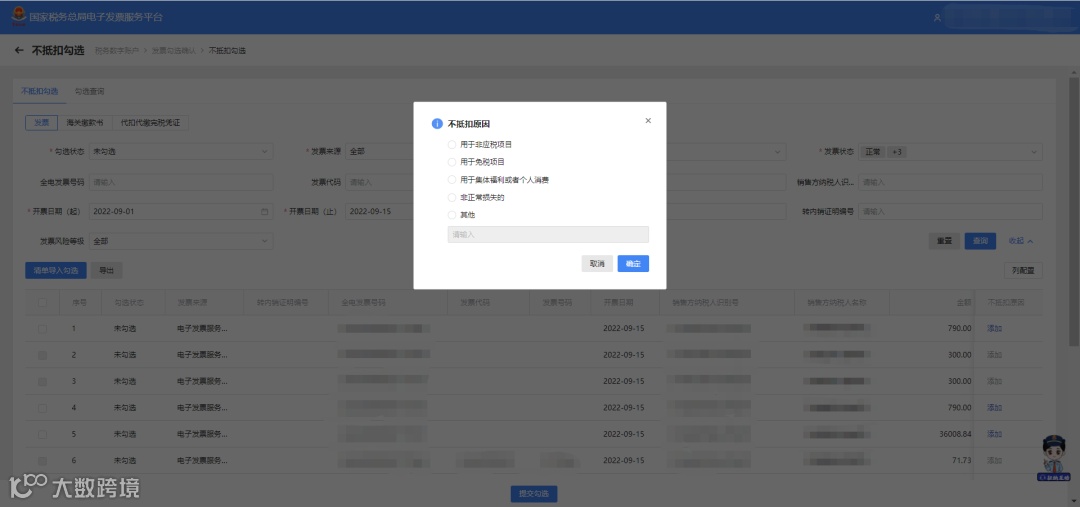 图3 不抵扣原因选择框