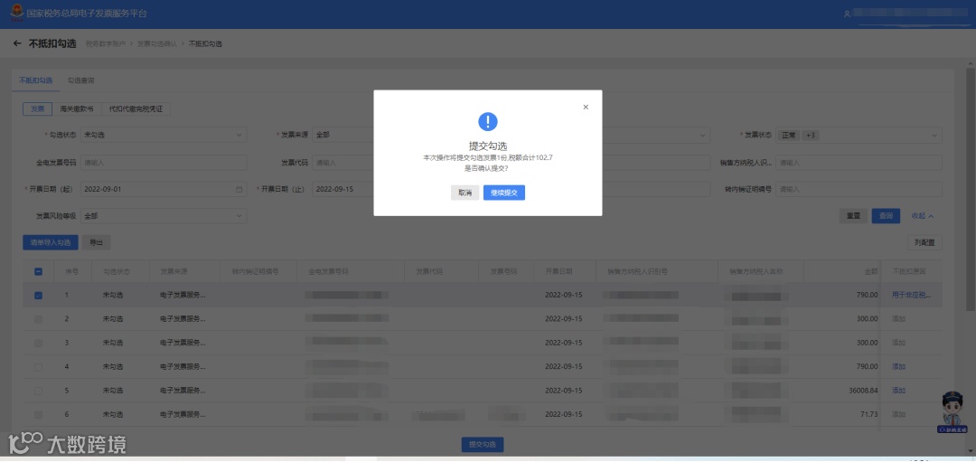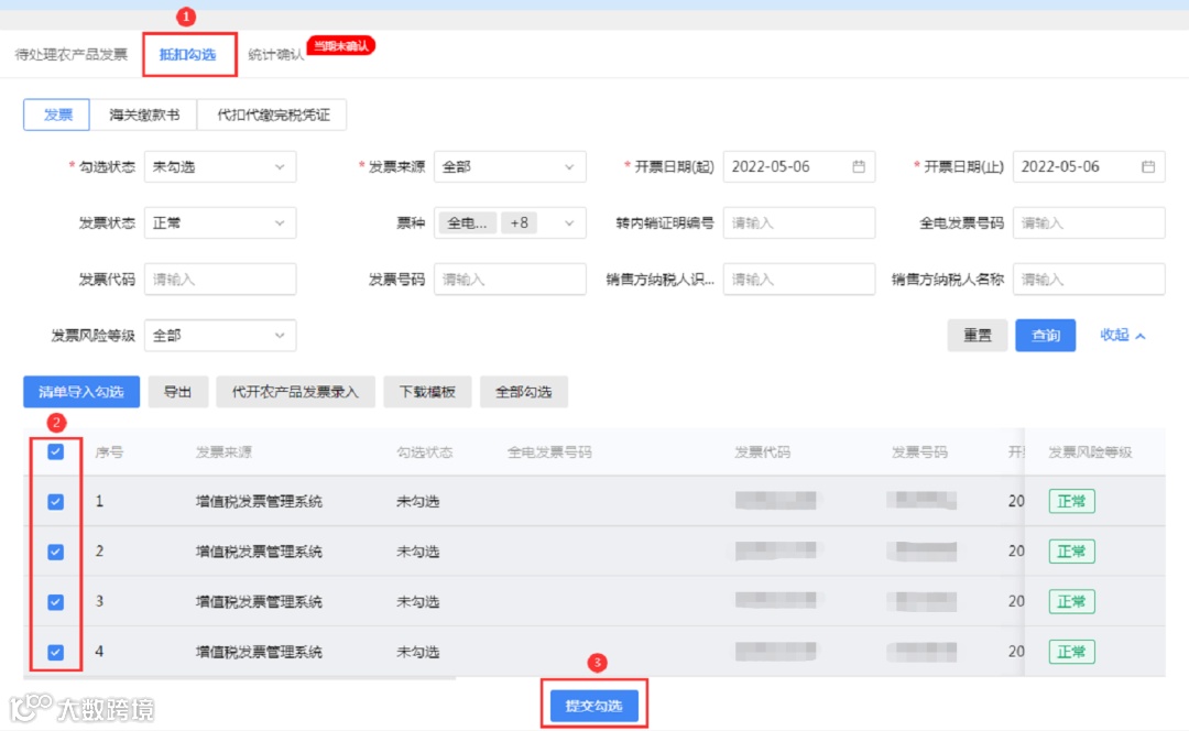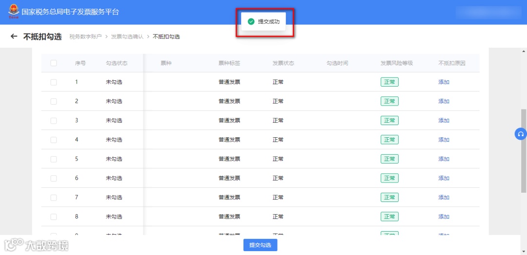 选择需要勾选的发票/提交勾选