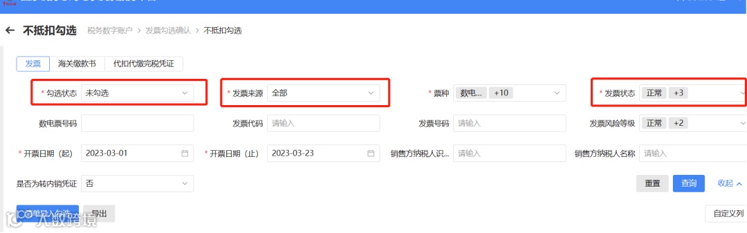 不抵扣发票勾选