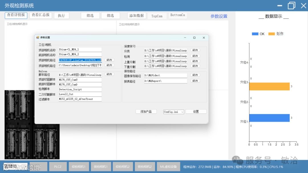 外观检测上位机软件是一款专为工业自动化生产线设计的瑕疵检测管理系统。该软件能够高效地从两台Dalsa 16K线扫相机和另一台PC接收图像数据,运用先进的检测算法对产品进行瑕疵检测,并将检测结果实时反馈给PLC及MES系统,以满足生产线的自动化和智能化需求。大大 提高了企业生产效率,降低瑕疵率,提升产品质量。