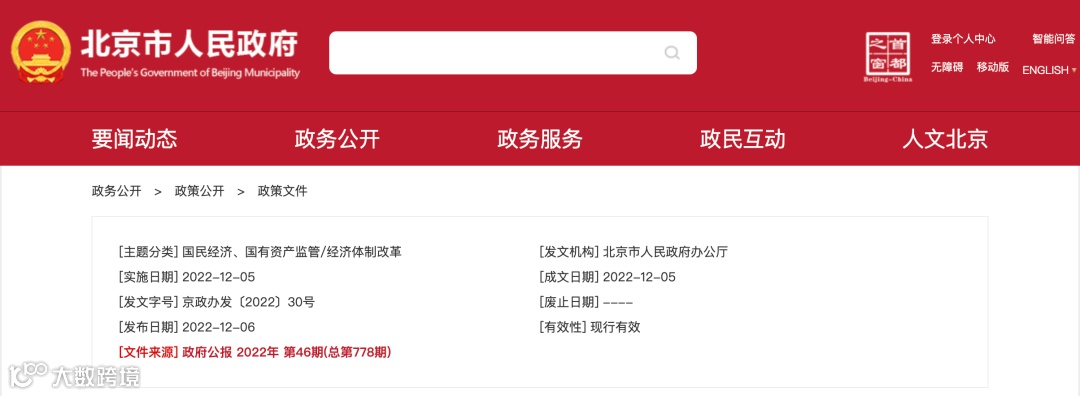2022年12月,北京市人民政府发布了《北京市积极应对疫情影响助企纾困的若干措施》。