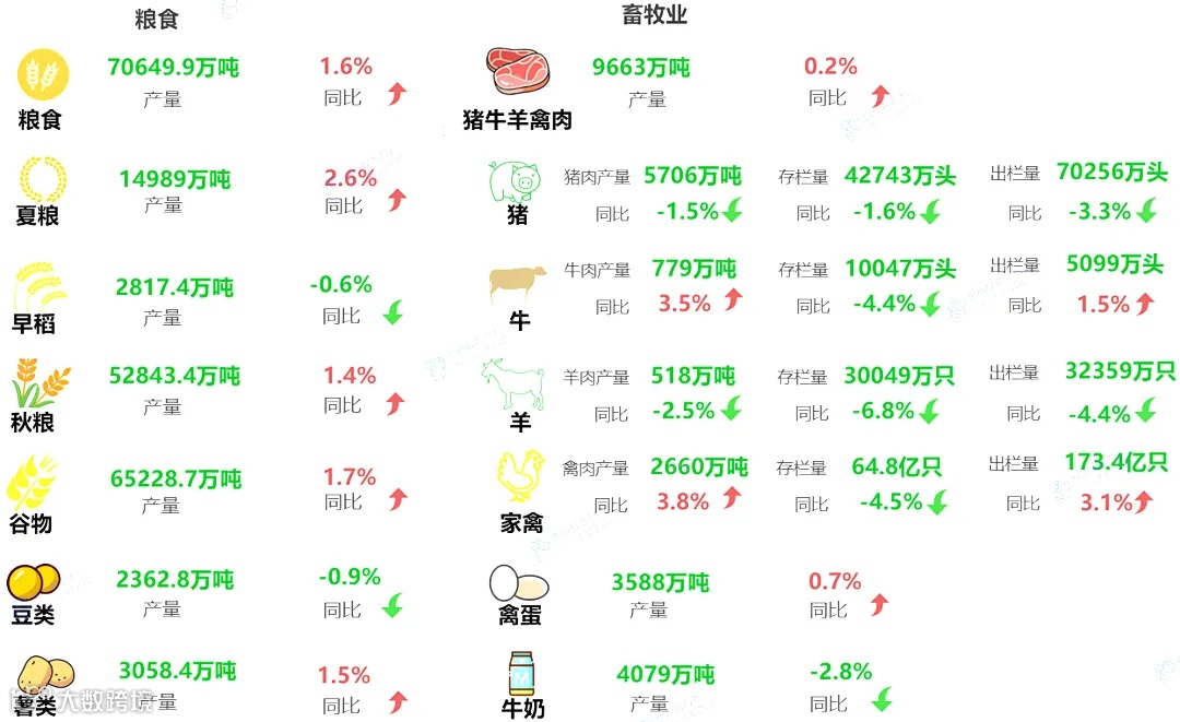 图表:2024年中国粮食及畜牧业生产情况概览