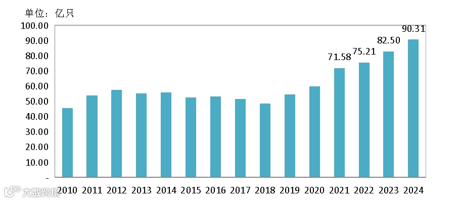 近年来,家禽生产加快发展,在一定程度上拉动了禽肉禽蛋产量的增加。据国家统计局数据显示,2018~2024年来,中国家禽出栏量连增7年——目前,已连续3年(即:2022~2024年)保持在160亿只以上;存栏量自2019年突破65亿只以来,常年保持在65亿只左右。