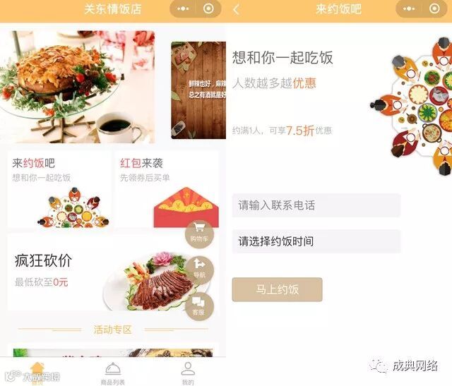 第四,我们开发的餐饮小程序加入了约饭功能