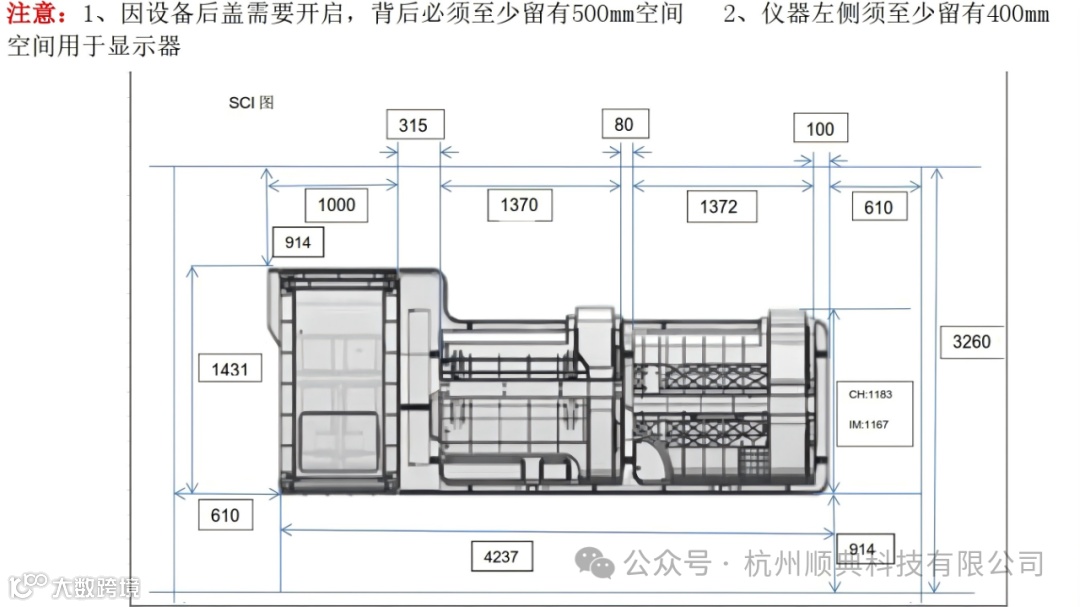 在不需要拆除部件的情况下,设备运输通道的宽度要求为1100 mm 。