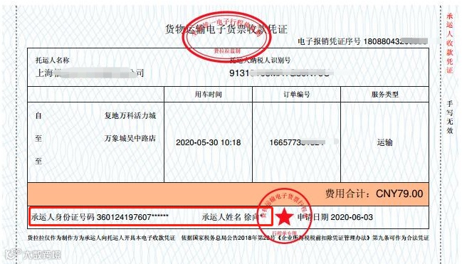 我们再来看看货拉拉的这张收款凭证,载明收款单位名称、个人姓名及身份证号、支出项目、收款金额等相关信息。政策规定的要素都是涵盖了的。