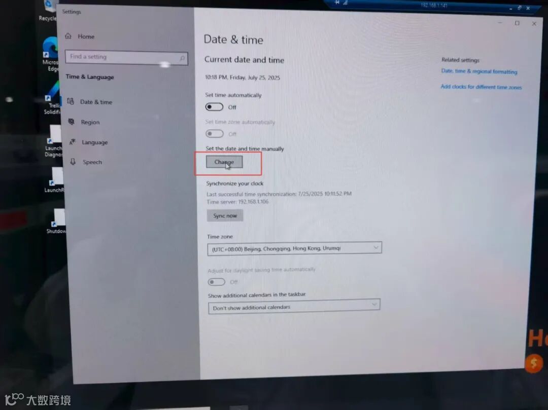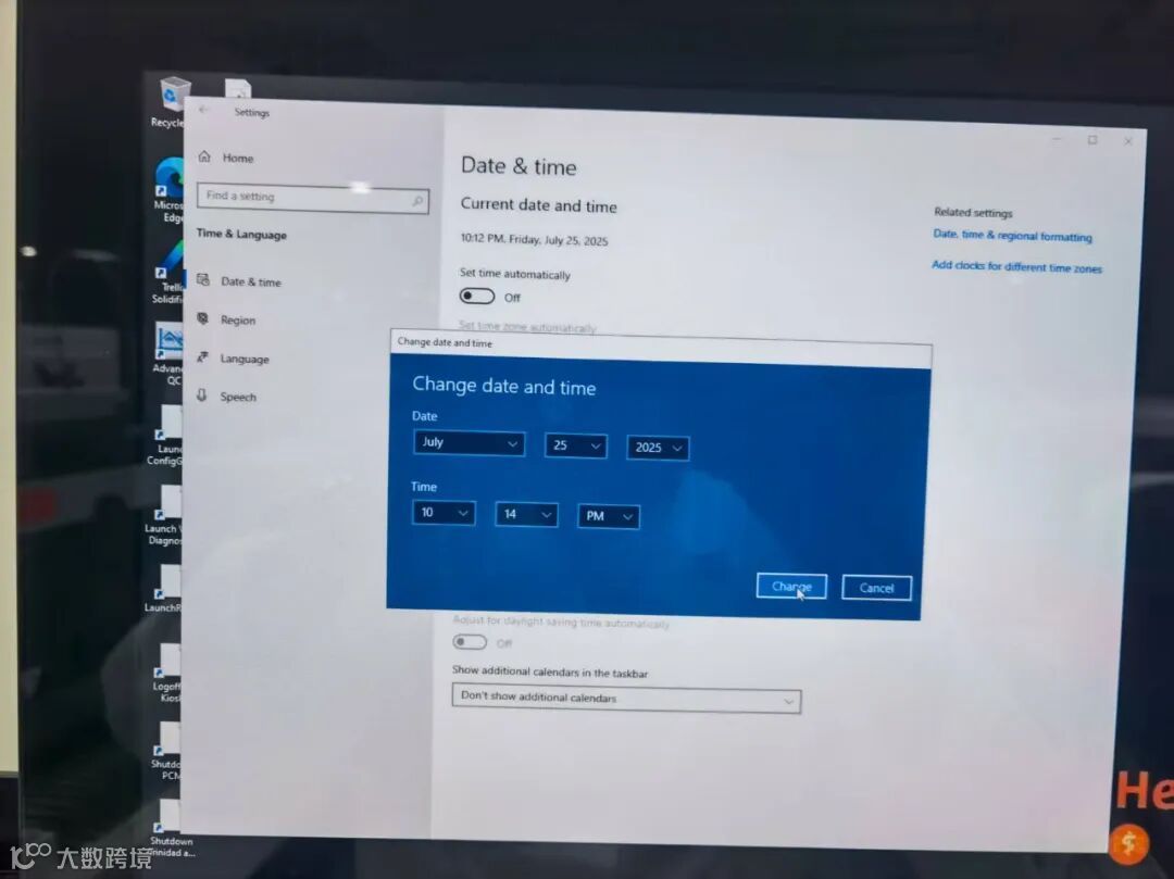 方法二:如果桌面没有同步程序,那就先改右下角电脑时间,再远程到每一台仪器电脑,分别都把时间改掉。