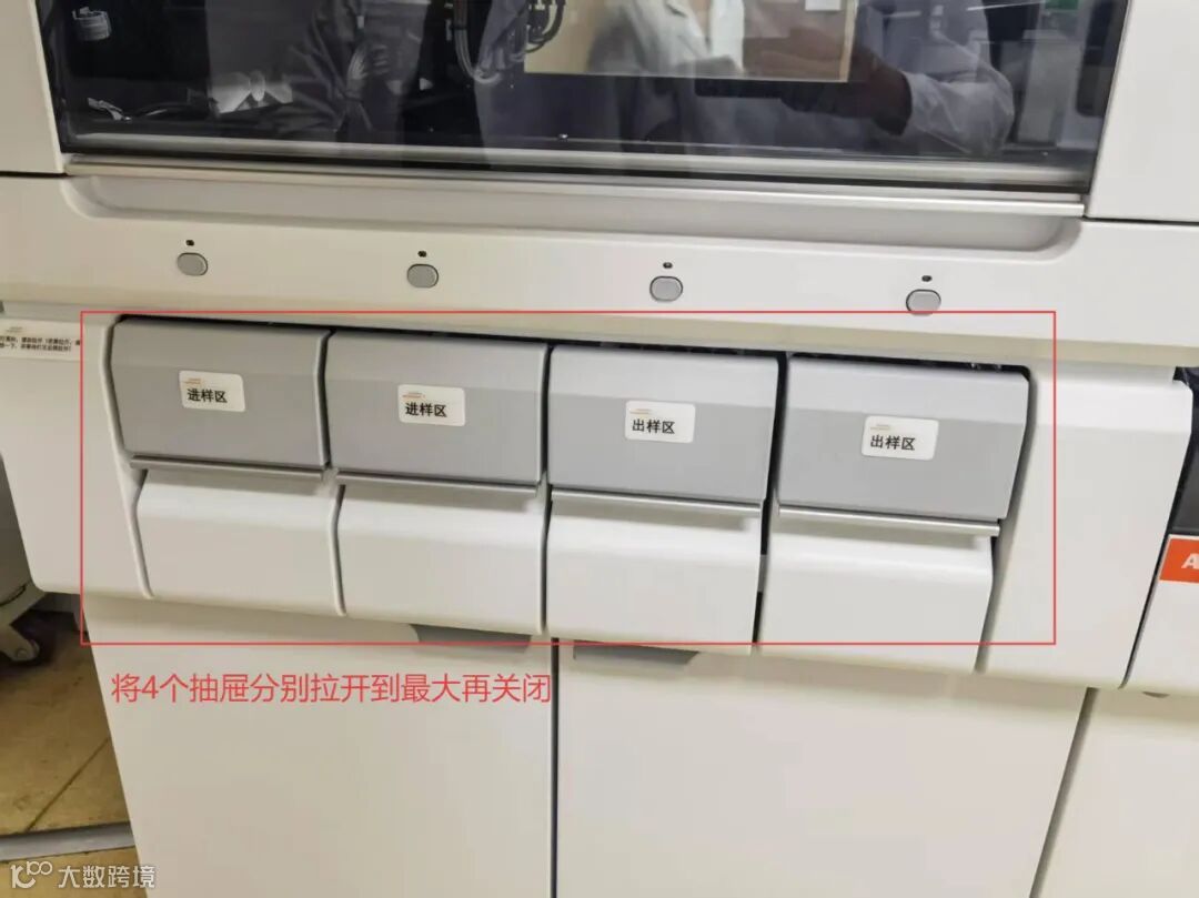 开机:先开SH电源,再开其他模块电源——等待仪器到达登入界面(此过程大概10分钟左右)——登入——等待模块正常——SH模块确认下校准和质控,4个抽屉拉出再关闭——启动条码打印机