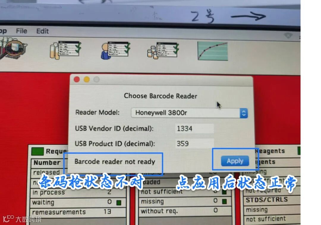 退出软件,关闭仪器,关闭电脑,拔插一下扫描枪,再开机试试。