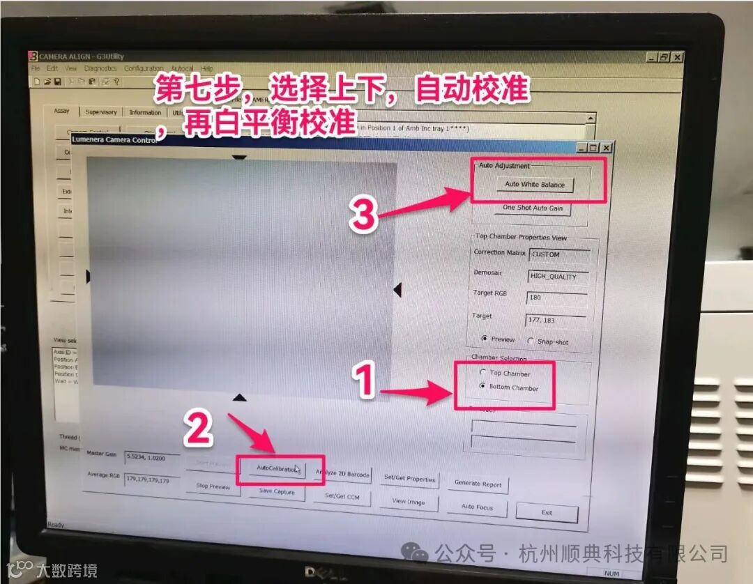 3、这个时候点击左上角第四个Dignostcs-Lumenera Camera-进来后点击左下角Auto Cal先自动校准(这个时候要看清楚这个框框右下方是选择的TOP还是BOT),这个做完之后再做右上角的Auto White Balance,上面灯泡和下面灯泡都可以做一下。做完之后不用点保存直接退出。