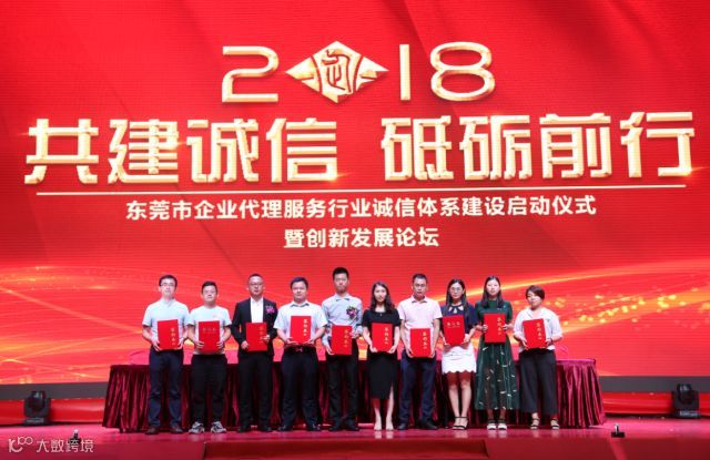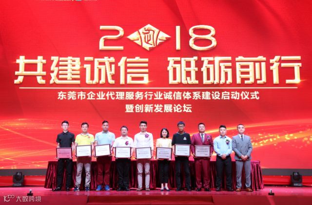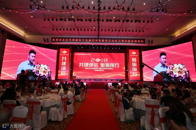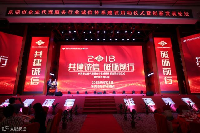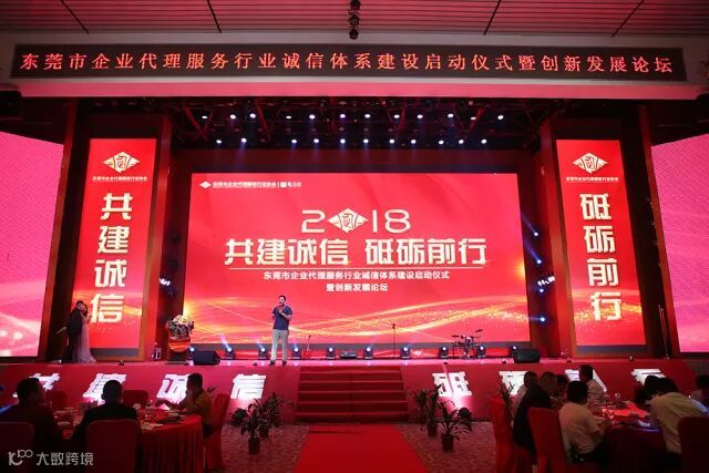 2018年6月23日下午,由东莞市企业代理服务行业协会主办的“共建诚信·砥砺前行---东莞市企业代理服务行业诚信体系建设启动仪式暨创新发展论坛”在万江尼罗河酒店国际宴会厅顺利举行,有关政府部门领导、协会全体会员、兄弟商协会领导、有关企业负责人、媒体记者等共400余人参加。