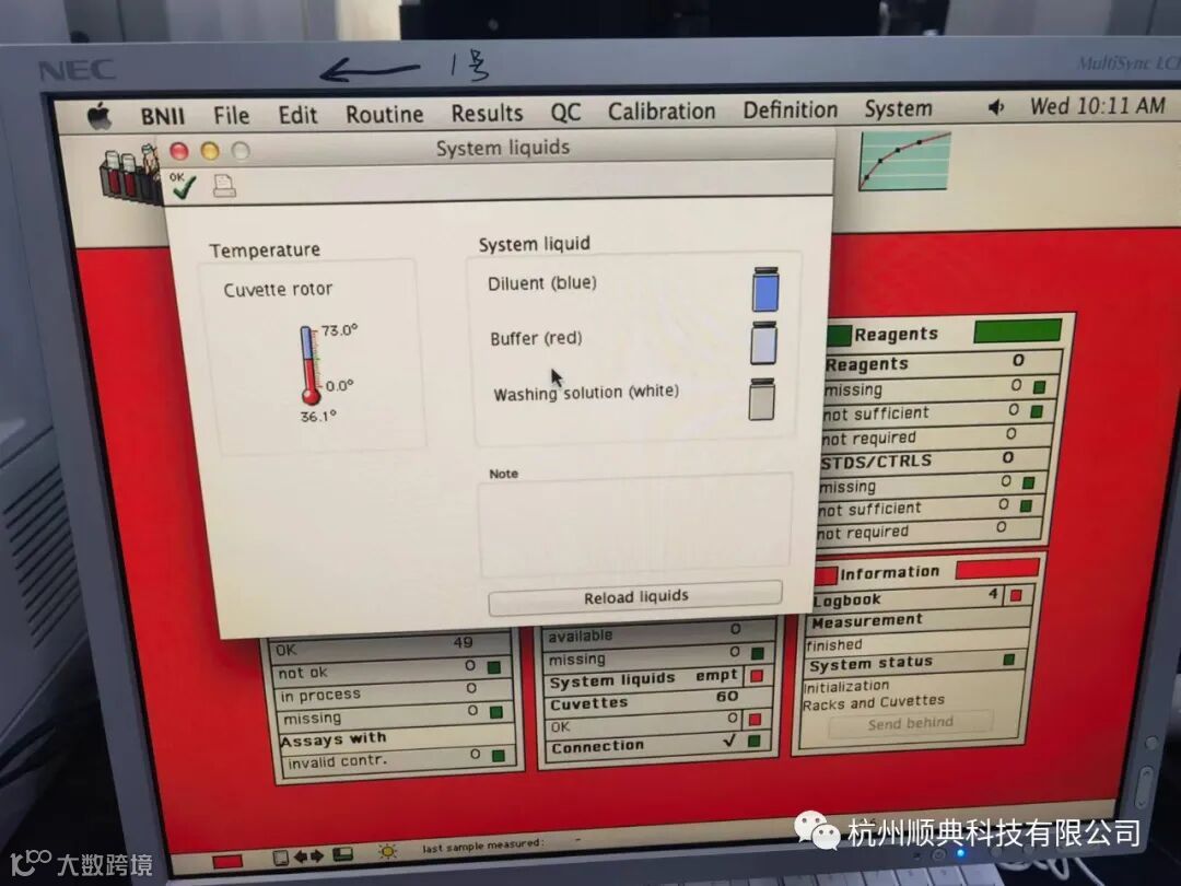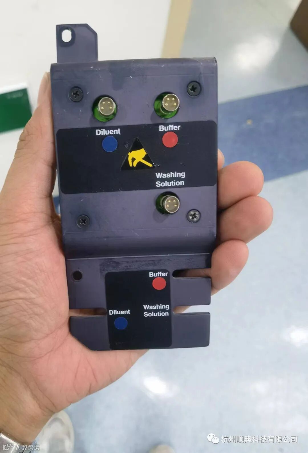 杭州顺典科技有限公司最近碰到一起Buffer报空,到现场把Buffer和Diluent 感应线的网口对换,还是只有Buffer报空。对调后Diluent显示正常,说明原本Buffer的传感器正常,问题的原因不在传感器上,后面换过网口板、P板、背板到网口板之间的排线,故障依然存在。因为排线是一个三个接头互通的排线,另一端连接前端的一个小电路板,后面更换小电路板后,故障消除(这个小电路板有预留接口,应该也是可以接专用的液体传感器的)。