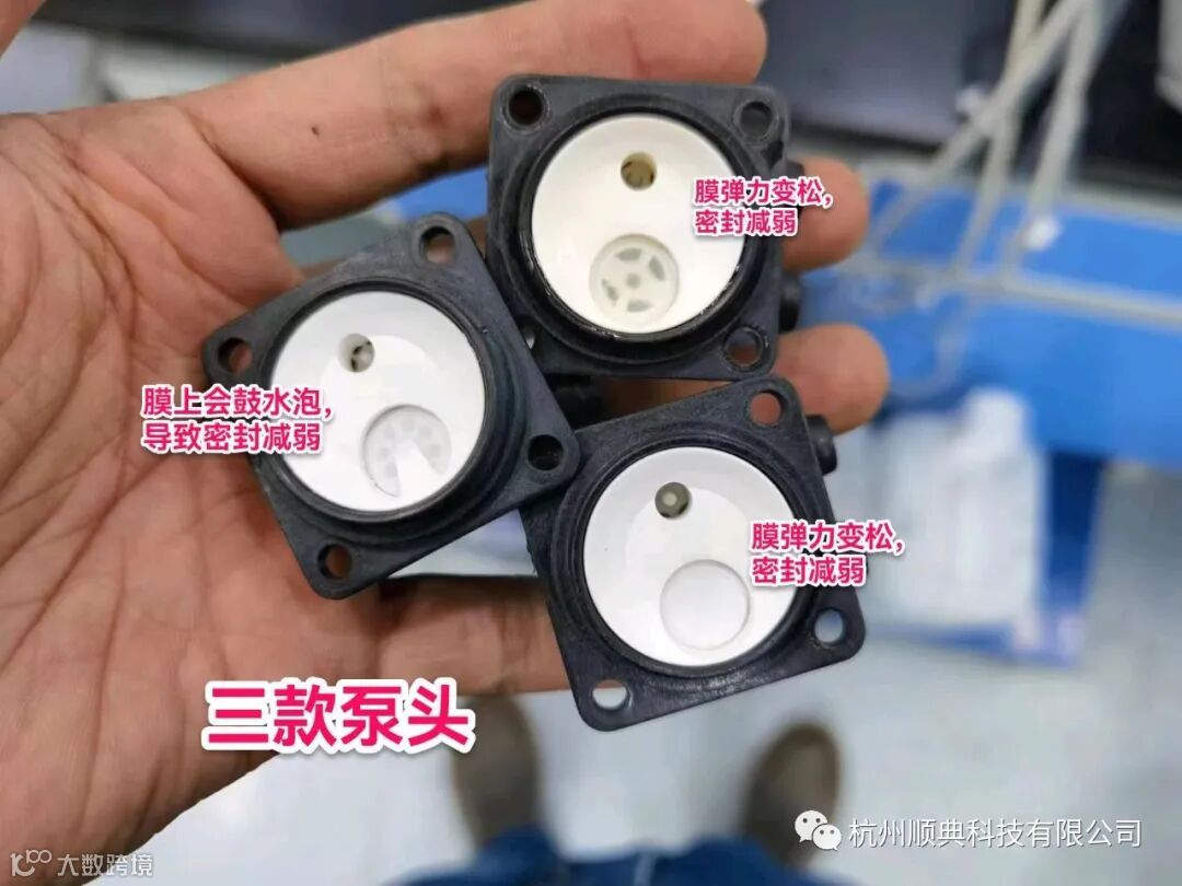 泵的打液量不够,问题基本出在泵体内的单项阀上,我有拆出过三款,要么是单向阀弹性不够,还有就是单向阀上长水泡了,导致密封性不好。泵打液量不够,可以单换泵头,这样更换会更方便快捷。(打液量不够,拆开如果膜上有水泡,可以把水泡戳破,这样打液量会上来一些。)