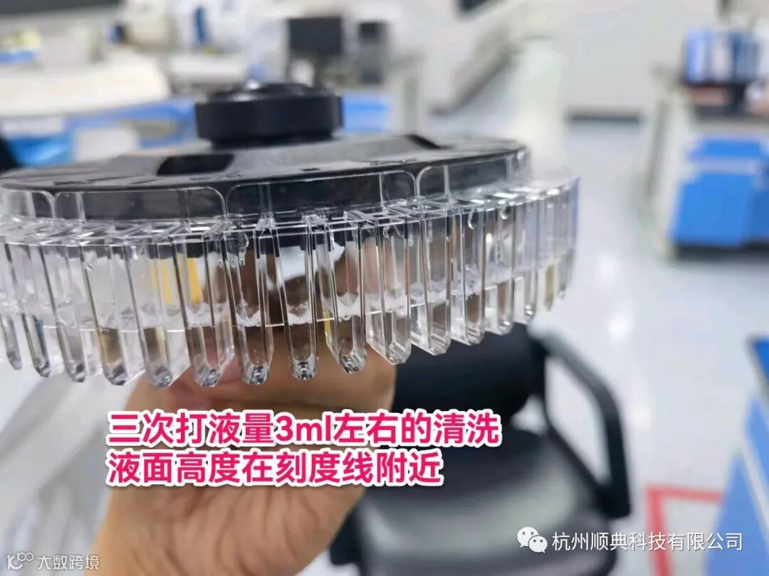 看打液量够不够,正常关机后,拿出比色杯,看里面的液体,正常是在刻度线附近。(个人感觉刻度线2/3以上都问题不大,低于刻度线1/2的,结果可能会出现交叉污染,纯属个人感觉,没有精确测量过。)