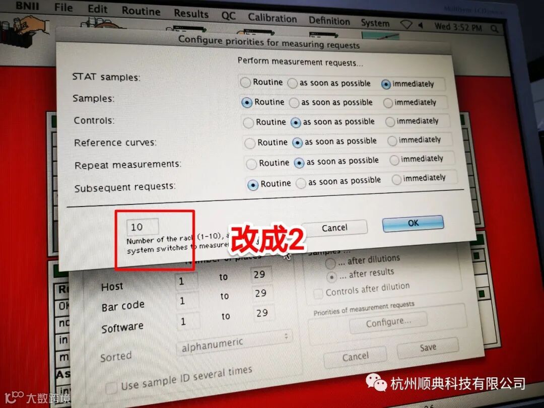 针对这个数字我的理解:比如是10,那就是以最大10架样本来做最优吸样,仪器会根据它认为的最优方式进行吸样。比如改成2,那就以最大2架来做最优吸样,2架全部吸完以后再进行下一个2架。这样能减小仪器优化计算量。