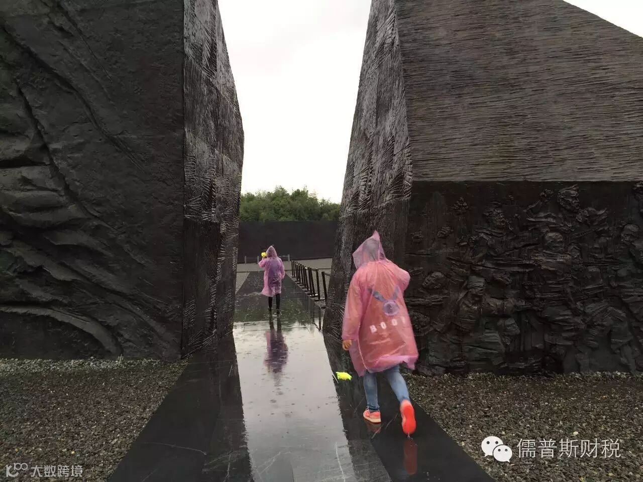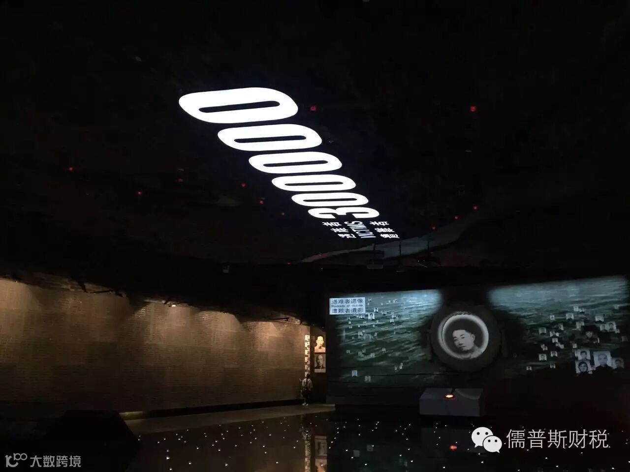在展馆的尾厅部分,有一间不规则的半开闭屋子,屋子下边是清冽的水,而屋顶上每隔十二秒就会有一滴水从高空滴下,同时侧面墙上贴有遇难者遗像的灯光会亮起后再熄灭。这是因为在惨绝人寰的南京大屠杀中,平均每十二秒就会有一个中国同胞被杀害……12秒,何其短暂,滴答,滴答,水滴落下,生命被迫结束……