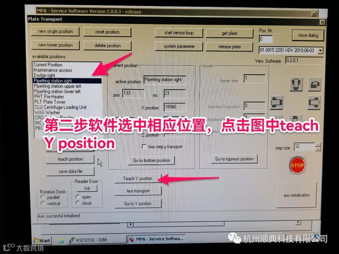 传送架安装回去后所有关于传送架的位置都需要检查,这次维修下来发现位置偏得多的就是Y轴,因为顶部的固定螺丝可以微调。所以装回去后可以按照下图所示步骤先把所有的传送架Y轴位置自动调整,调整完之后做传送架的自动校准,通过后开机初始化做标本即可。首先进入Service SyStem ,按照下图所示调整:注意,每一个单元调整完成之后都把传送架做个初始化