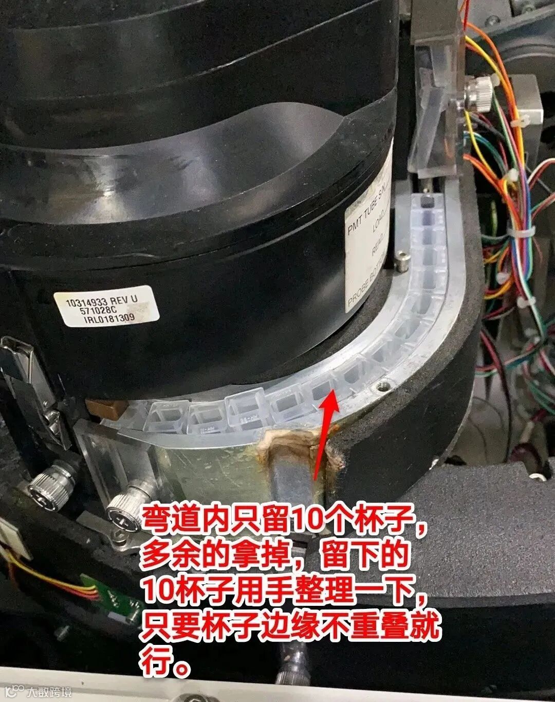 2、把弯道上盖打开,里面留下10杯子,多余的拿掉,留下的10杯子用手排列一下,只要杯子之间边缘不重叠就行。处理完,透明上盖盖回。