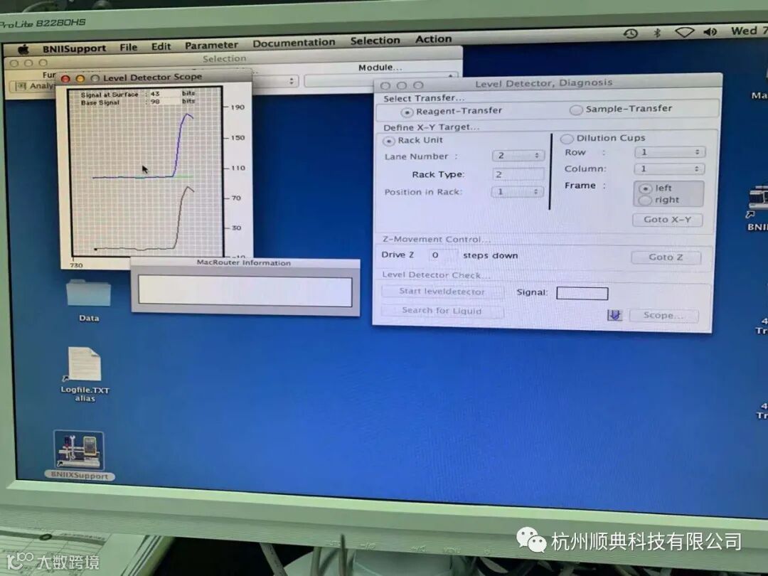 打开Support,查看样本针与试剂针位置发现均正常。运行Level Detector Scope,页面感应正常。