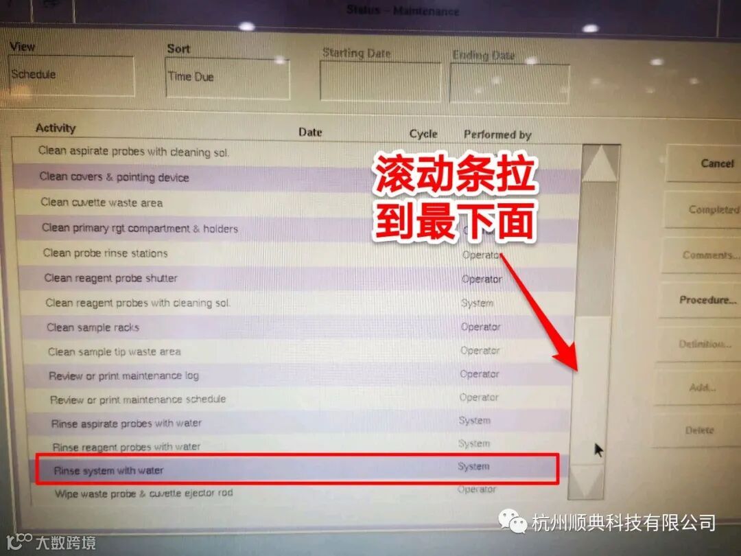 3、进诊断工具(Diagnostic Tool),先运行Home System,再运行Empty & Fill Ring。都完成后,关闭诊断界面进行保养程序。建议可以运行Rinse system with water代替日保养,时间会稍微短一点,运行完成后日保养会变成黄色。