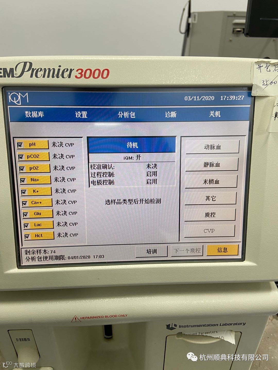 仪器血气包加载后显示未决cvp