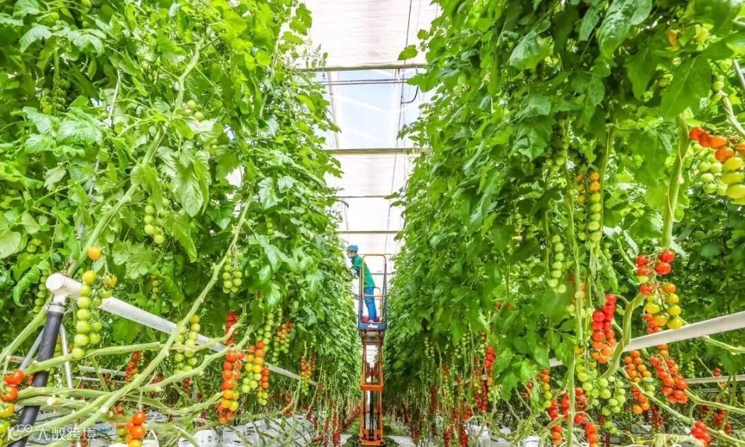 种苗不见土,番茄空中挂,升降车、打叶车有序穿梭,管线、传感线与藤苗交织……连栋温室里,春意在寒冬涌现。从靠天吃饭到知天而作再到造势而为,科技助力现代农业生机盎然。