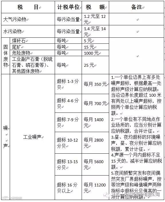 环境保护税税目税额表