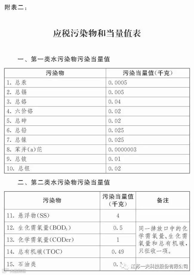 (二)应税水污染物按照污染物排放量折合的污染当量数确定;